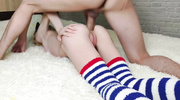 Пацан не стал ждать и сразу поставил крошку раком, чтобы растянуть её тугую попку для анального секса. Сначала он аккуратно облизал её анус языком, а потом вогнал ствол в её тугое очко до яиц одним толчком. Её попка трепетала от ритма проникновения, пока он безжалостно трахал её внутрь в бешеном ритме. Крошка кричала от боли и кайфа, её глаза были полны слез от глубины проникновения. Их крики сменились мечтательным шепотом, когда мужчина завершил акт обильным оргазмом внутрь её тела.